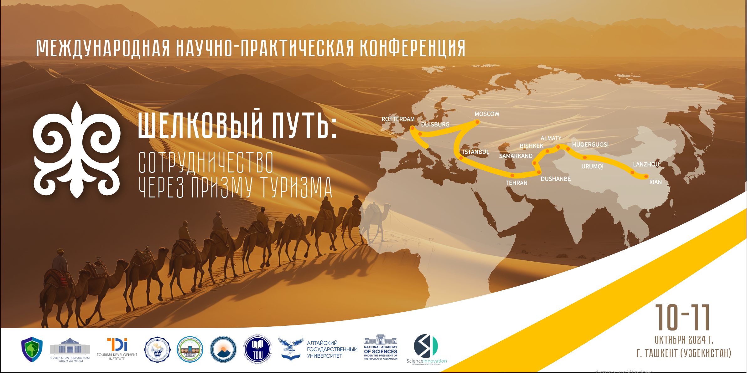 В связи с чем, Оргкомитет приглашает представителей науки, учебно – образовательных учреждений, специалистов государственных органов управления, представителей туристского бизнеса и всех заинтересованных лиц принять участие в Международной научно – практической конференции на тему: «Шелковый путь: сотрудничество через призму туризма», которая состоится 10 – 11 октября 2024 года в городе Ташкенте.